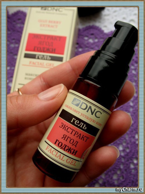 Гель для лица »Экстракт Ягод Годжи» от бренда натуральной косметики DNC мне понравился. Отличный состав, приятен в использовании, экономичен в расходе, не вызывает аллергии (но я, в принципе, не аллергик, так что здесь все индивидуально). После нанесения кожа чувствует себя прекрасно. Единственный минус — гель не оказывает никакого влияния на морщинки, хотя производитель об этом заявляет! Но для общего состояния кожи — прекрасное средство!